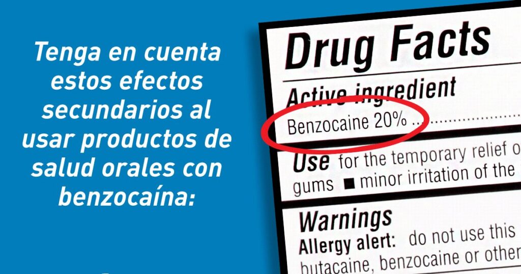 La benzocaína puede ocasionar metahemoglobinemia, una afección sanguínea grave que reduce la capacidad de los glóbulos rojos para transportar oxígeno por todo el cuerpo y que puede poner en peligro la vida.